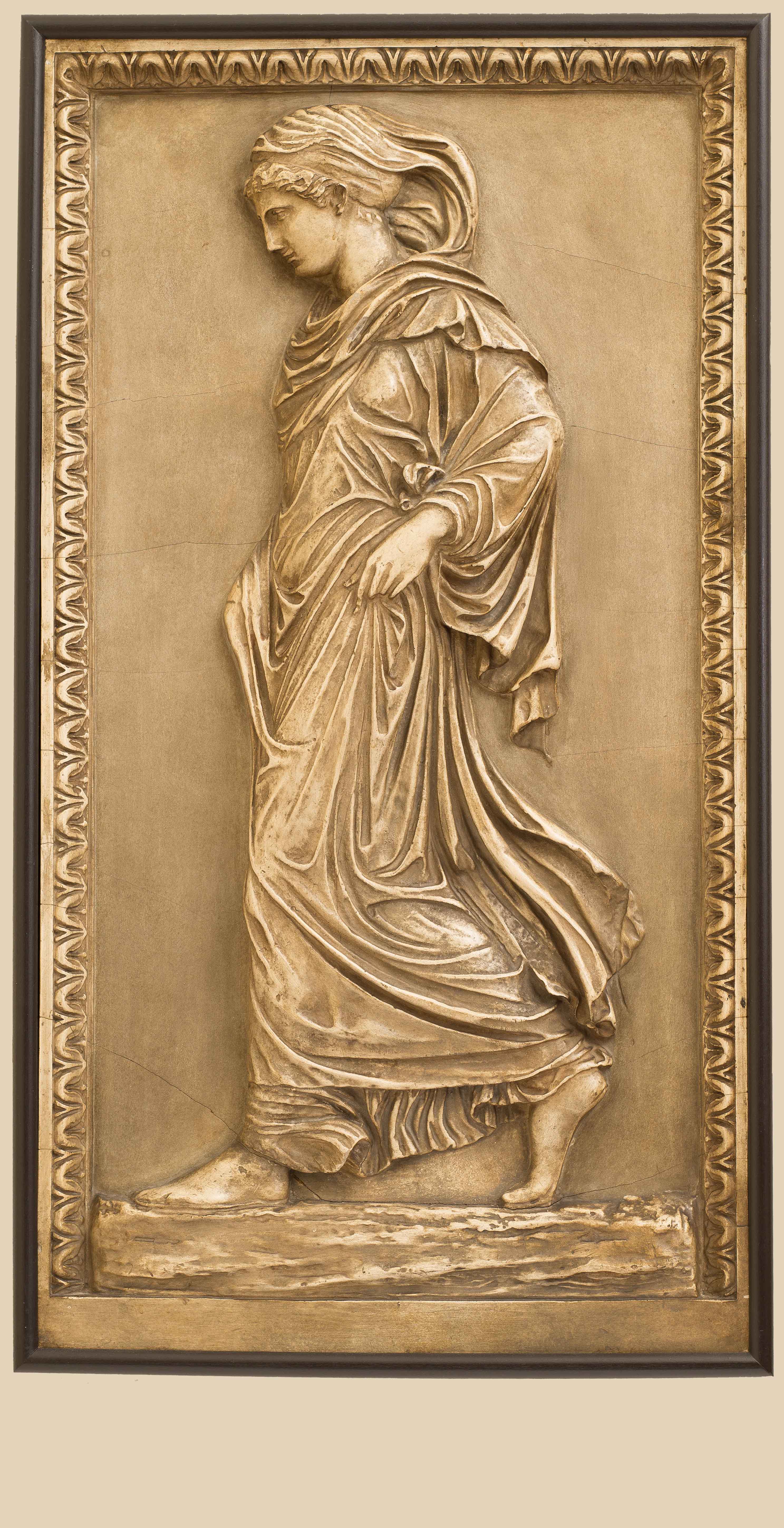 And yet her gesture is energetic and active, for she lifts her draped tunic to reveal her feet.